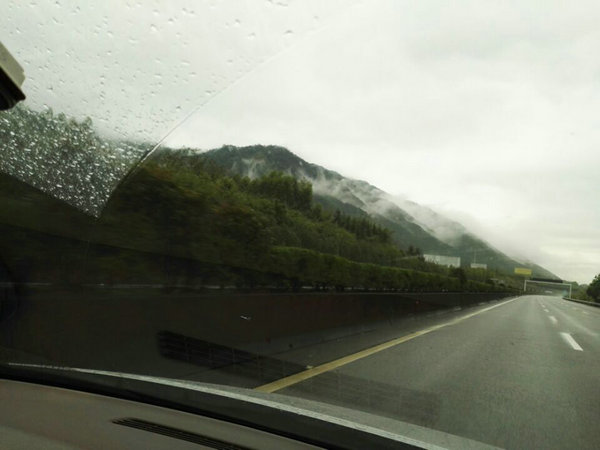 車在暴雨中飛馳,都市的鋼鐵叢林,漸漸在身后遠去。我們行駛在高速路上,路過高樓林立的郊區,穿越平房聚集的鄉鎮,映入眼簾的是連綿不絕的一座座大山,看那雨后的山巒,云在繚繞、霧似升騰,宛如置身仙境。