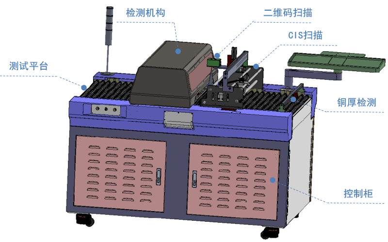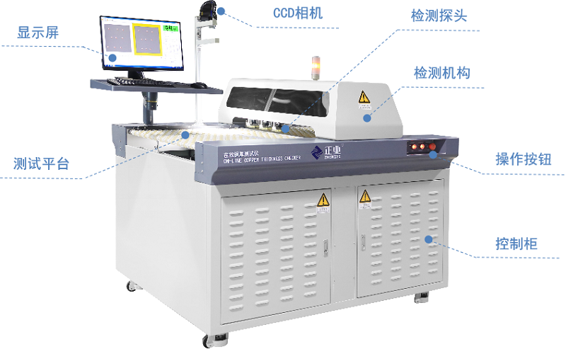 自動(dòng)化檢測(cè)平臺(tái)搭載面銅探頭正反面同時(shí)檢測(cè)。