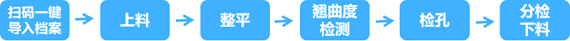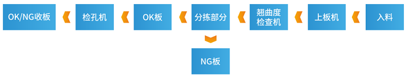 上板機+水平板翹反直機+板彎板翹檢查機+在線檢孔機+并聯機器人